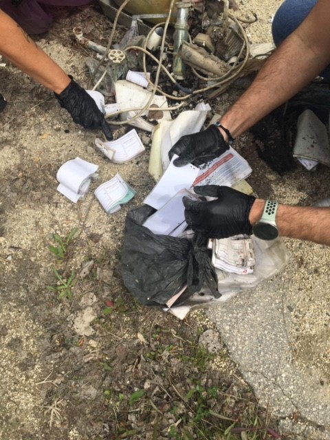Kollégáink most is igyekeztek a hulladék származási helyére vonatkozóan információkra lelni a kidobott szeméthalomban, ami sikerült is: két céget és egy magánszemélyt azonosítottak be számlatömbök, nyomtatványok, levelezések alapján. Egyikük sem kerületi illetőségű.