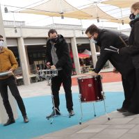 A fejlesztés ünnepélyes átadója az Óbudai Danubia Zenekar ütőseinek vérpezsdítő előadásával vette kezdetét, trópusi hangulatot csempészve a borongós októberi napba.